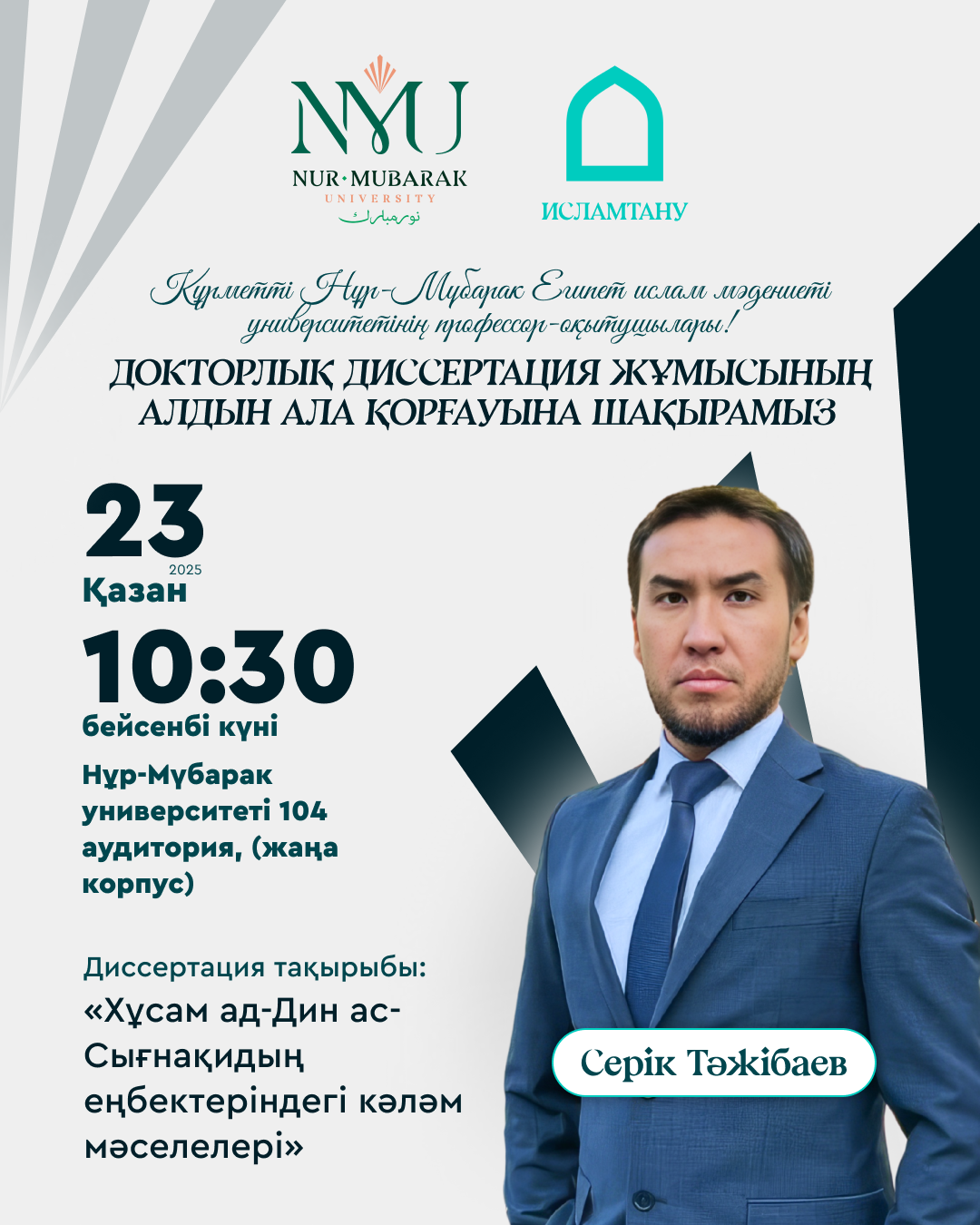 ҚАЗАҚСТАН МӘДЕНИЕТІ ЖӘНЕ ИСЛАМ ДІНІНІҢ ҚОЛЖАЗБАЛЫҚ МҰРАСЫ: АЛТЫН ОРДА МЕН МЫСЫР МӘМЛҮКТЕРІ КОЛЛЕКЦИЯЛАРЫ МЫСАЛЫНДА» атты III Халықаралық семинар Нұр-Мүбарак Египет ислам мәдениеті университеті Қазақстан мұсылмандары діни басқармасы және Ислам тарихы, өнері мен мәдениетін зерттеу орталығымен (IRCICA) бірлесе отырып, 2025 жылдың 9-10 қазан күндері «Қазақстан мәдениеті және Ислам дінінің қолжазбалық мұрасы: Алтын Орда мен Мысыр мәмлүктері коллекциялары мысалында» атты III Халықаралық семинар өтті.Халықаралық семинарға Қазақстан мұсылмандары