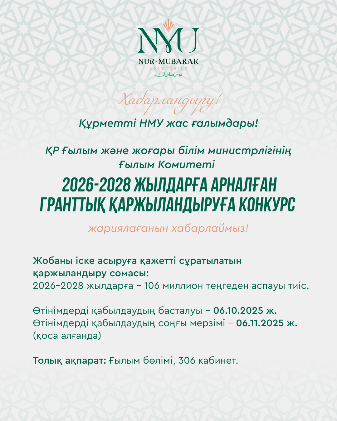 Конкурсқа құжат қабылдау мерзімі: 06.10.2025 — 06.11.2025 жж.