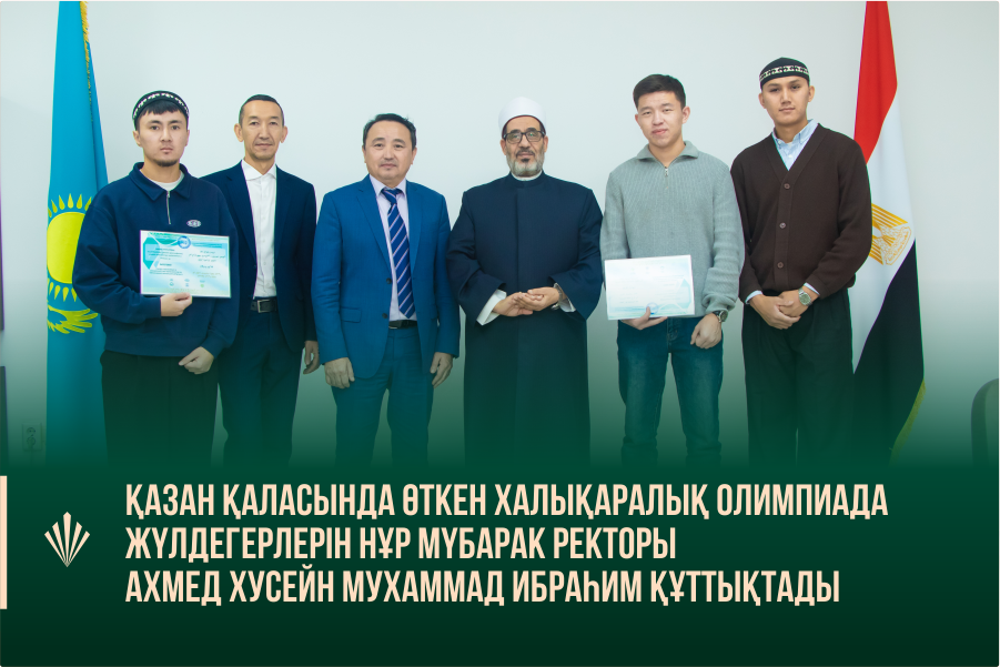Қазан қаласында өткен халықаралық олимпиада жүлдегерлерін Нұр Мүбарак ректоры Ахмед Хусейн Мухаммад Ибраһим құттықтады Қазан қаласында өткен халықаралық олимпиада — ғылым мен руханияттың тоғысқан алаңы болды. Әлемнің 20-дан астам елінен жиналған қатысушылардың арасында Нұр-Мүбарак университетінің студенттері де білімін жоғары деңгейде дәлелдеп, абыройлы жетістіктерге қол жеткізді. Кабдулахит Ислам — усул әл-фиқһ және фиқһ бағыттары бойынша III […]