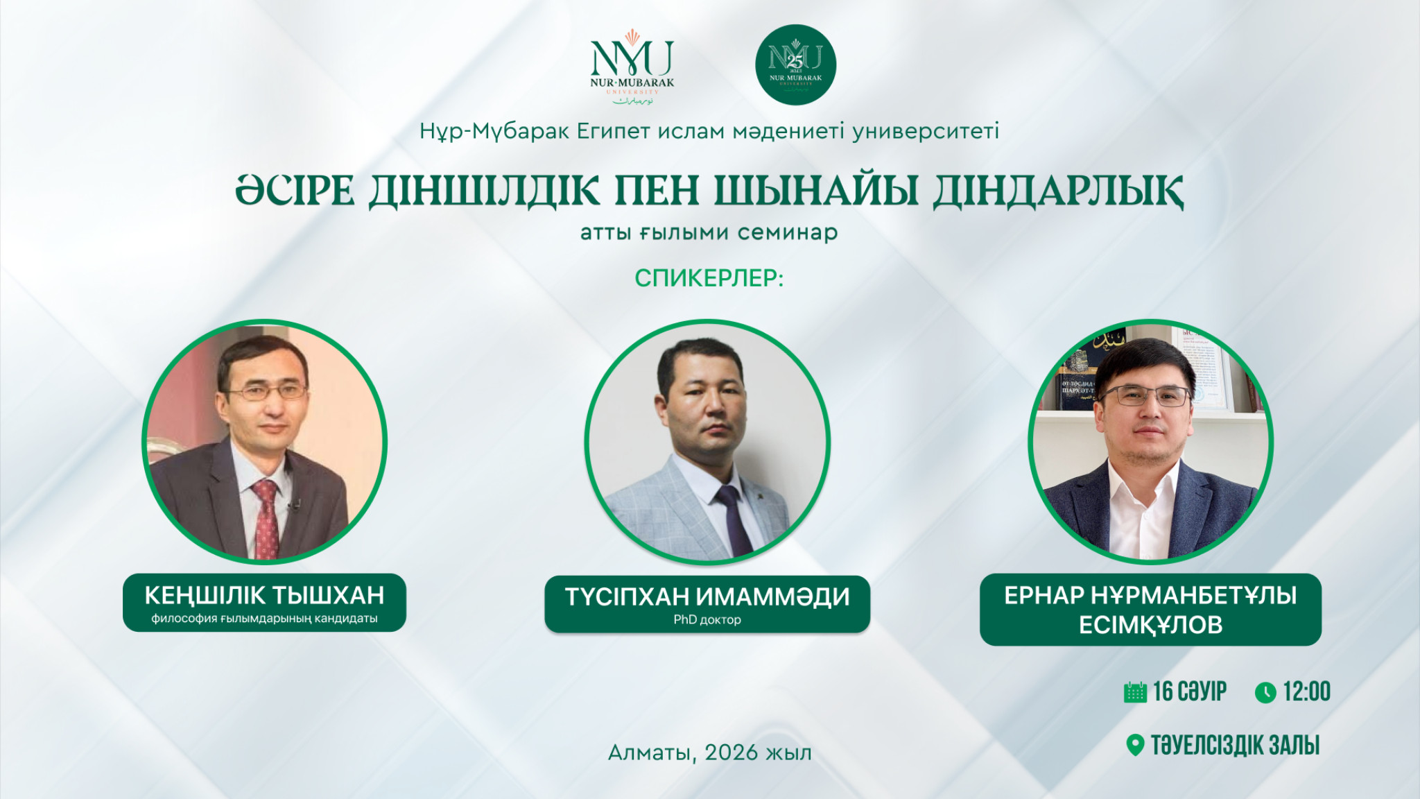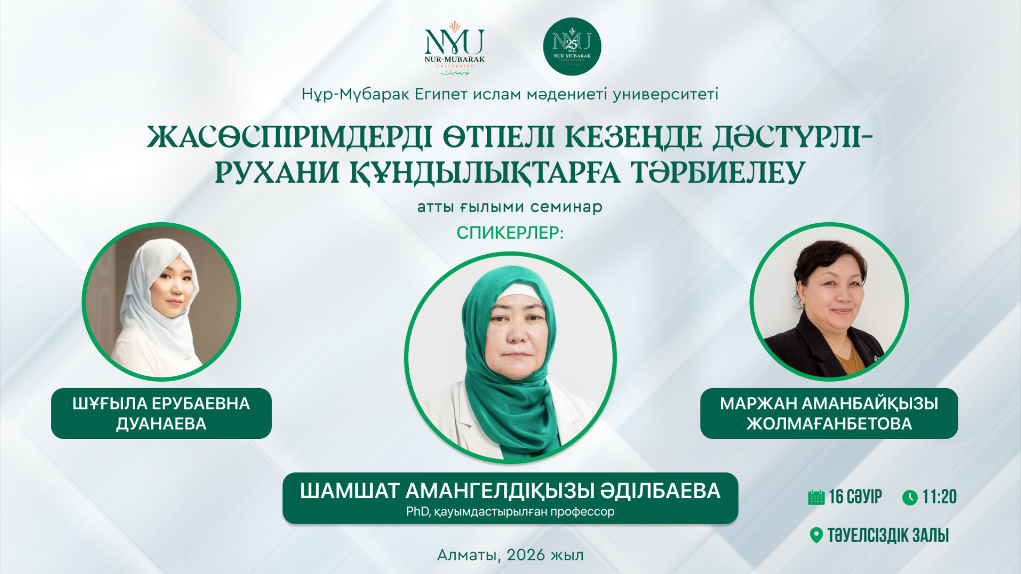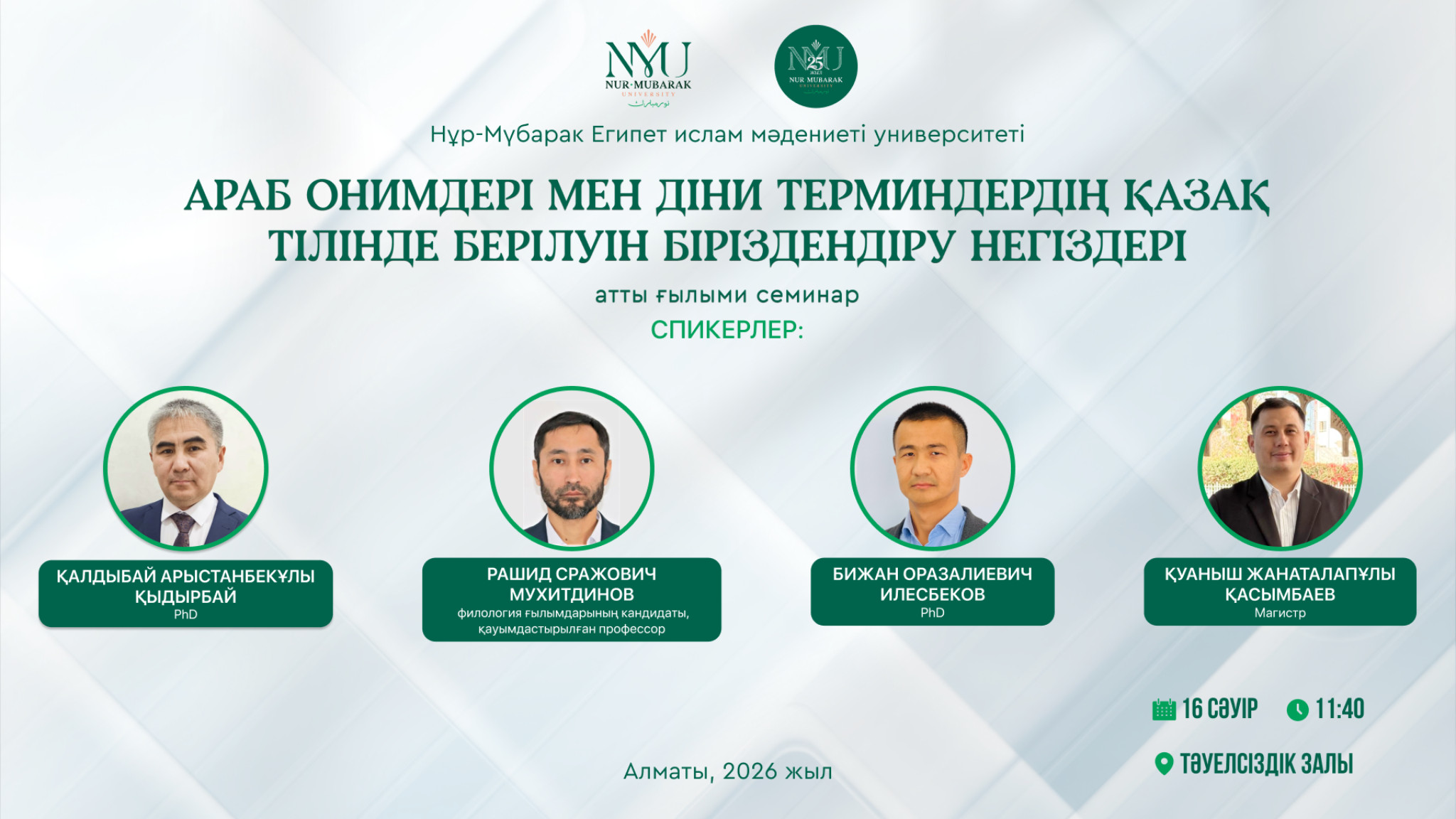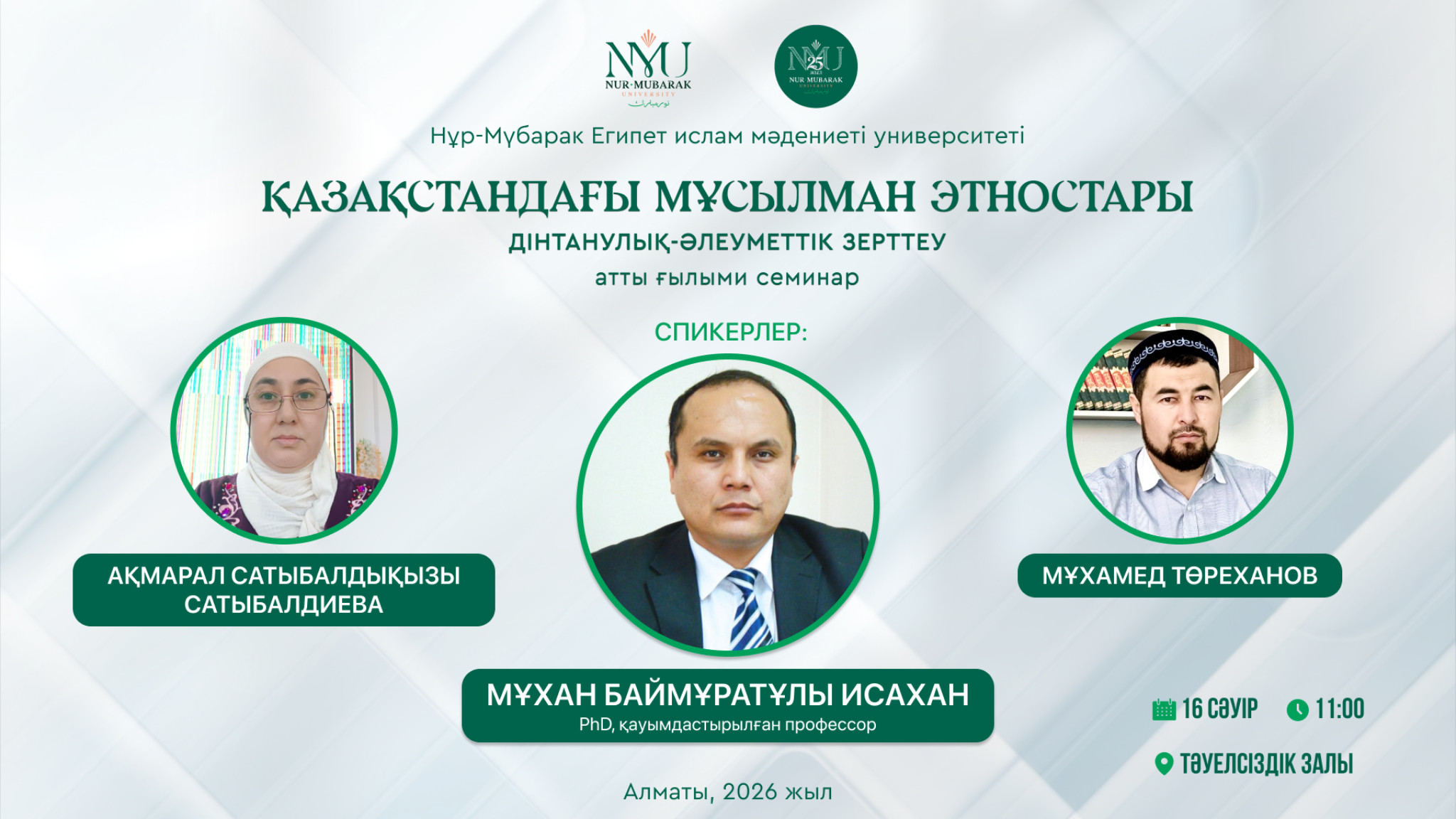 Сіздерді Ғылым апталығы (6-17сәуір) аясында арнайы ұйымдастырылатын Университетішілік жобалардың нәтижесі бойынша әзірленген еңбектердің ғылыми семинарына шақырамыз!