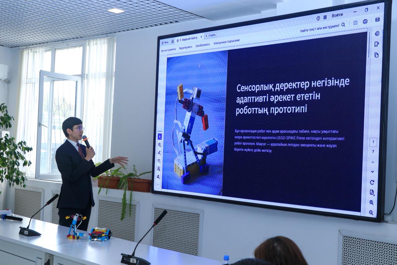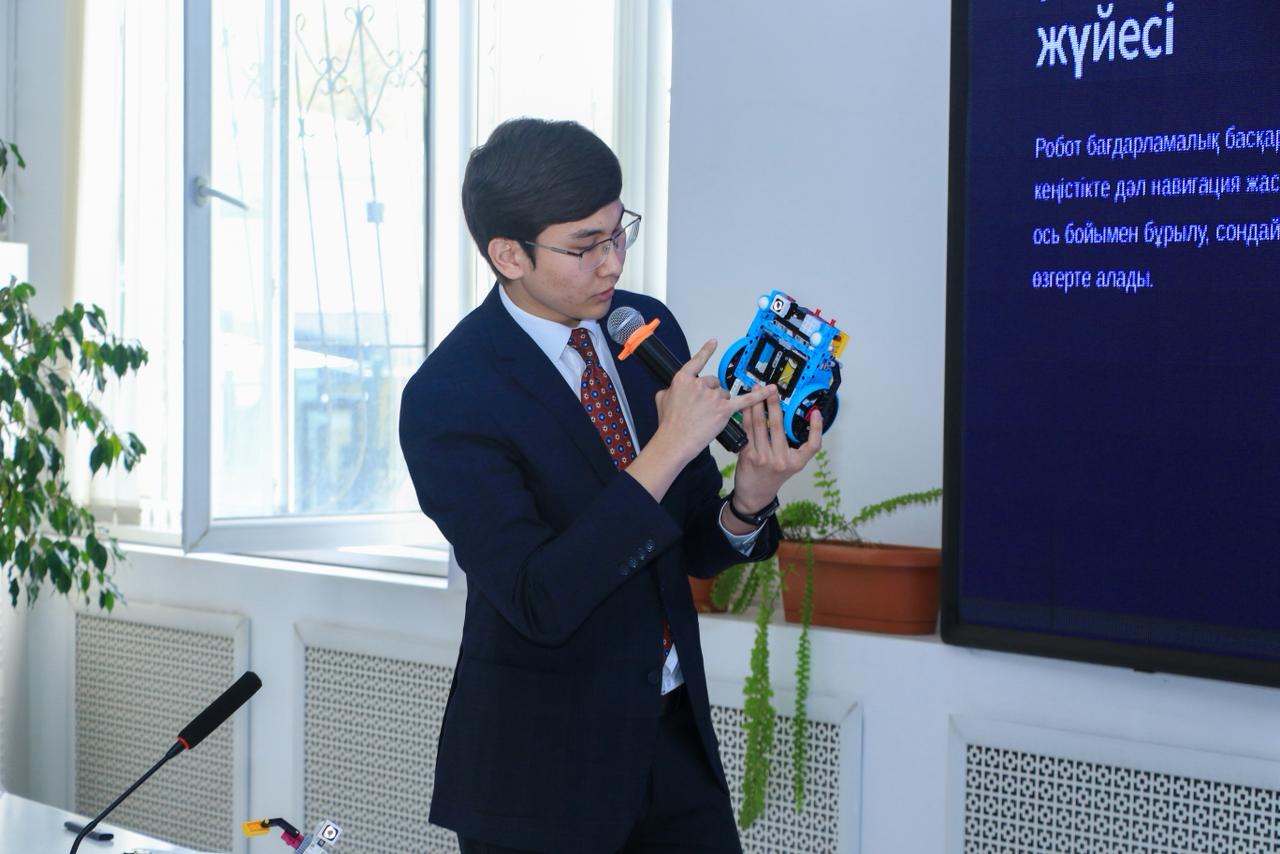 3-ші орын — Сәбит Бақдәулет, Нұр Мүбарак университеті, жоба тақырыбы: Сенсорлық деректер негізінде адаптивты әрекет ететін робот прототипі.