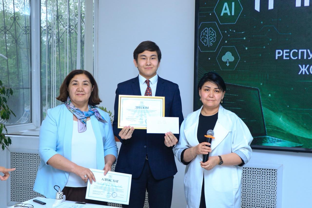 Бас жүлде — Эшен Ансар, Нархоз университеті, жоба тақырыбы: «Гибридные интеллектуальные чат-боты для автоматизации возвратов и отслеживания заказов в электронной коммерции: объединение rule-based, ML и LLM подходов»