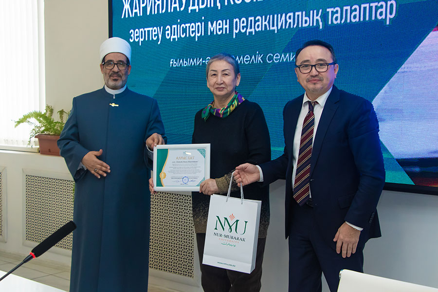 2025 жылдың 9 желтоқсанында Нұр-Мүбарак Египет ислам мәдениеті университетінің Ғылым бөлімі «Ғылыми мақалаларды жариялаудың кәсіби нормалары: зерттеу әдістері мен редакциялық талаптар» тақырыбында ауқымды ғылыми-әдістемелік семинар ұйымдастырды. Іс-шара университеттің Тәуелсіздік залында өтіп, ғылым саласында еңбек ететін жас зерттеушілер мен оқытушылар үшін маңызды кәсіби диалог алаңына айналды.