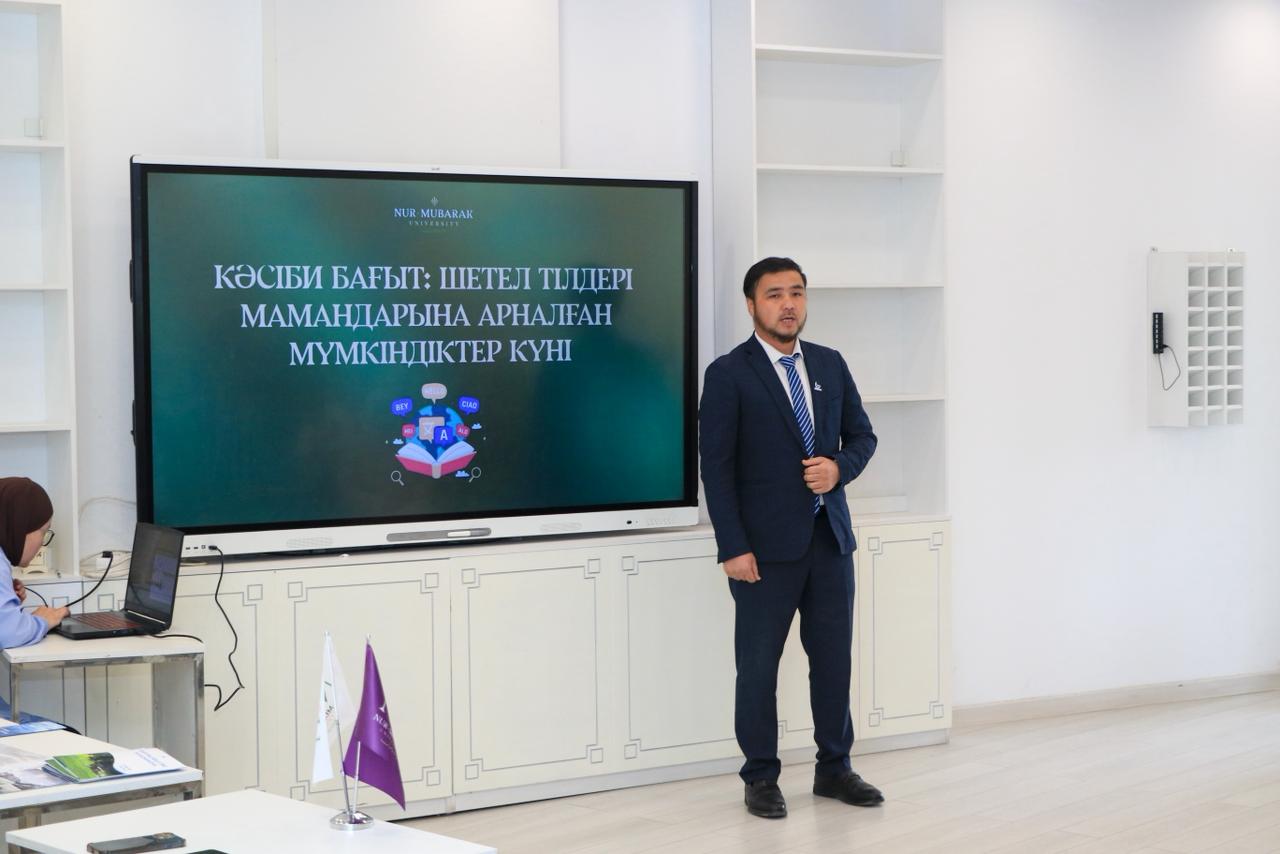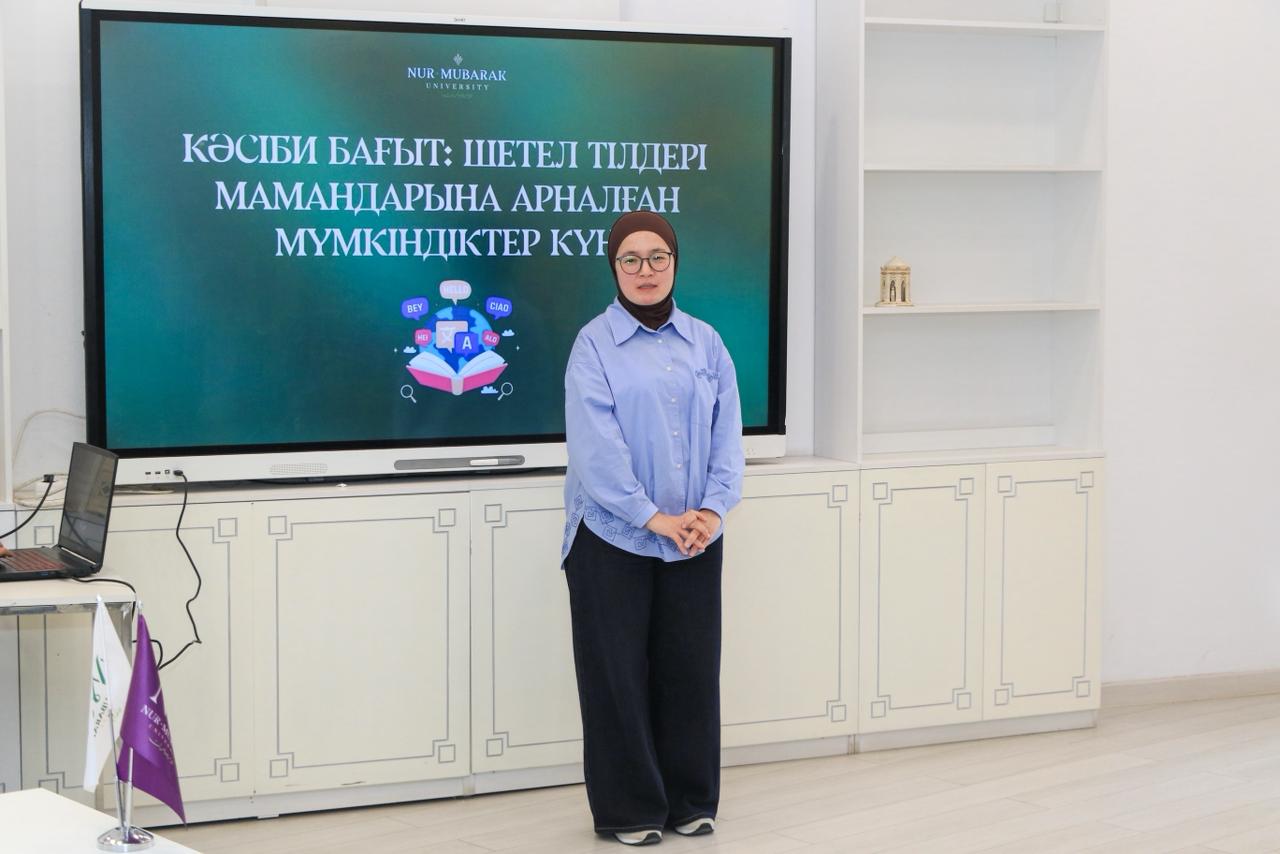 «Нұр-Мүбарак» Египет ислам мәдениеті университетінде «Кәсіби бағыт: шетел тілдері мамандарына арналған мүмкіндіктер күні» атты кездесу ұйымдастырылды. Ілкімді іс-шараға спикер ретінде ҚМДБ жанындағы Ислам ғылыми зерттеу институтының қызметкерлері, туристік компаниялардың өкілдері, шет тілін оқытатын орталықтардың мамандары арнайы қатысты.