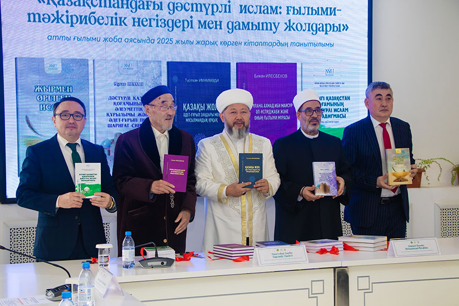 Айта кетейік, жиында келесі кітаптар көпшілікке таныстырылды: Жырмен өрілген ислам хрестоматиясы, Ғұлама Ахмад ибн Мансур әл-Испиджаби және оның ғылыми мұрасы, Дәстүрлі қазақ қоғамының әлеуметтік құрылымы және әдет-ғұрып пен шариғат синтезі, Қазақы жол: әдет-ғұрып заңдары мен мұсылмандық құқық атты монографиялар, сондай-ақ Бүгінгі Қазақстан қоғамының дәстүрлі ислам парадигмасы оқу-әдістемелік құралы.