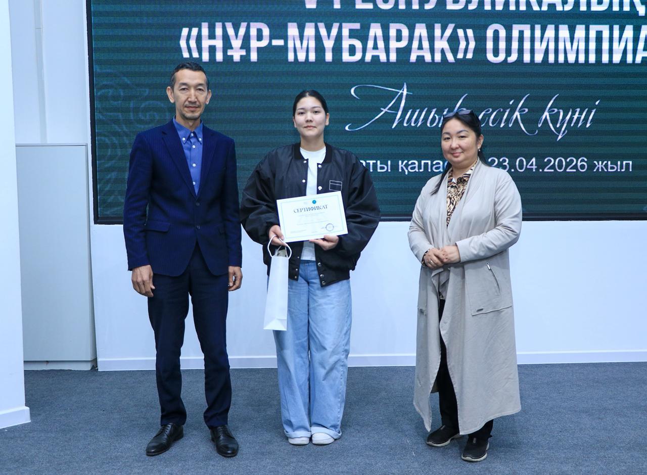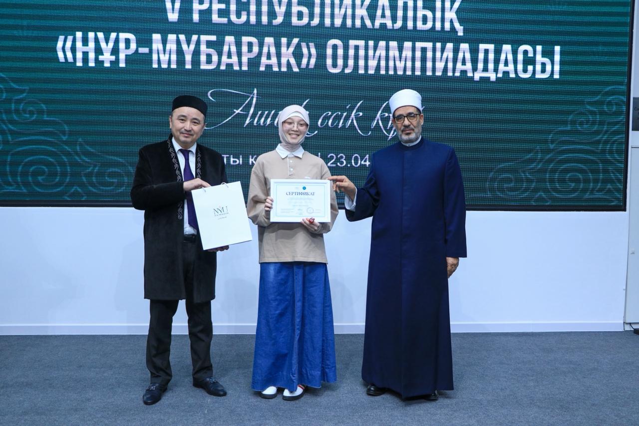 V Республикалық «Нұр-Мүбарак» олимпиадасының нәтижесі бойынша жүлдеге іліккен 9 талапкерге аталмыш оқу орнында оқуға мүмкіндік беретін білім гранттары табысталды. Сондай-ақ барлық қатысушыларға оқу ақысына 10%-дық жеңілдік берілді.
